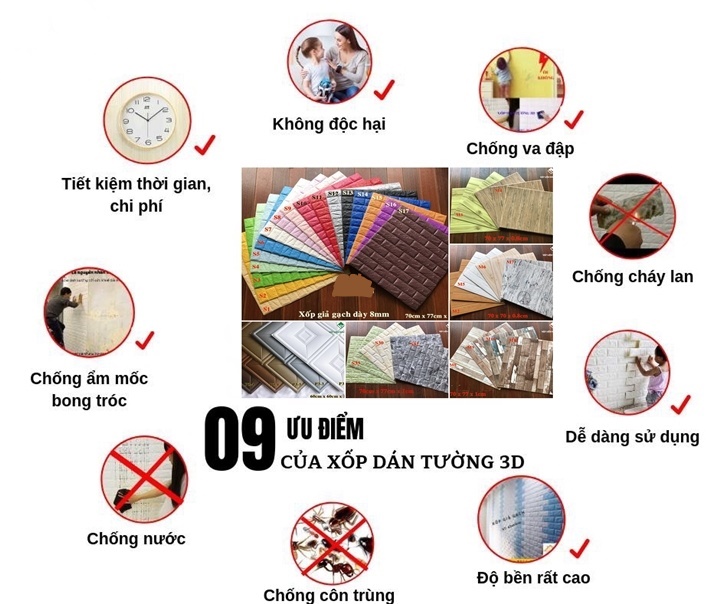 Xốp dán tường an thịnh hàng VIỆT NAM chất lượng cao 👉kích thươc 70*77cm 👉Độ dày của sản phẩm là 5mm( BẢO HÀNH 3 NĂM ) 👉Keo có độ bám dính tốt và không độc hại với trẻ nhỏ 👉Bề mặt xốp được phủ bóng một lớp nhựa hdpe lên có khả năng chùi khăn ướt thoải mãi...